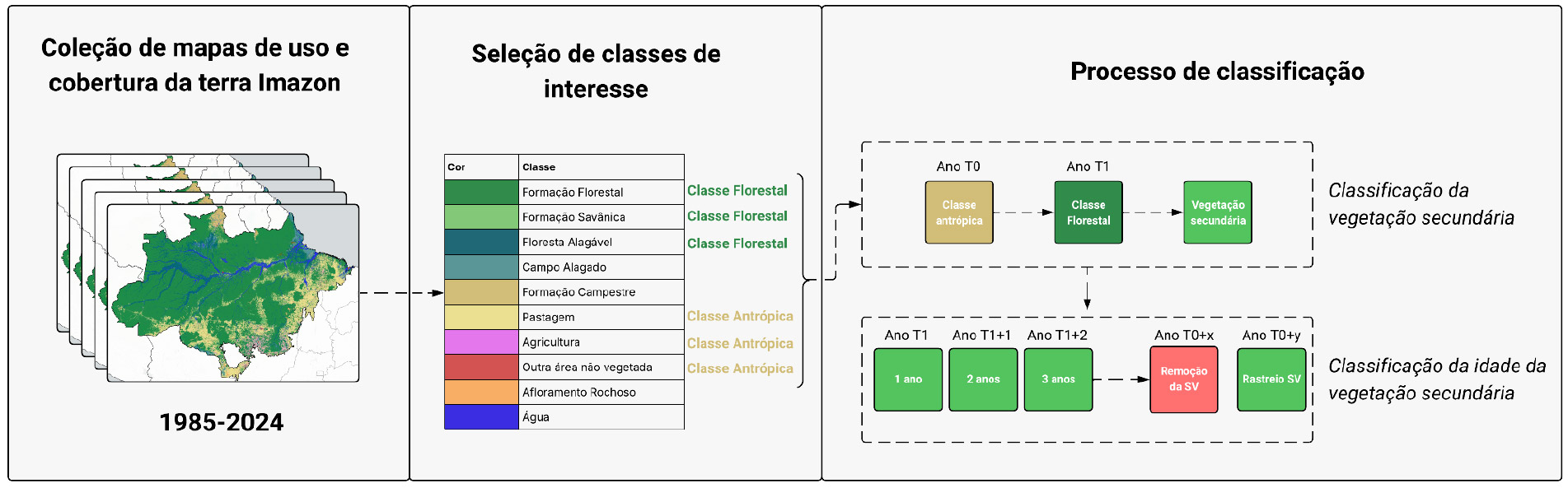 O FloreSer é uma iniciativa que visa monitorar e quantificar a dinâmica da vegetação secundária (VS) no bioma da Amazônia brasileira, preenchendo uma lacuna de dados deixada por sistemas de monitoramento oficiais. Desenvolvido a partir de séries temporais dos mapas de uso e cobertura da terra MapBiomas Amazônia, o FloreSer permite estimar a extensão, a idade e as mudanças anuais da VS entre 1985 e 2024. Os mapas de VS são utilizados para responder três questões específicas: (i) Qual é a extensão anual de VS por classe etária na Amazônia brasileira? (ii) Qual é a taxa anual de perda de VS e a contribuição da VS para o desmatamento total na Amazônia brasileira? (iii) Qual é o balanço líquido de carbono da VS com base nos ganhos e perdas anuais de VS por idade na Amazônia brasileira?