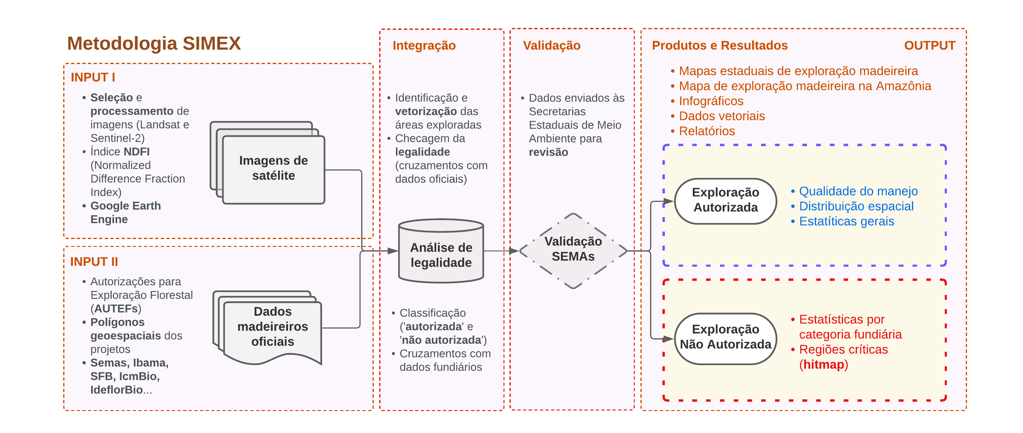 O Sistema de Monitoramento da Exploração Madeireira (Simex) é uma ferramenta que monitora a exploração de madeira a partir das imagens de satélites, desenvolvida pelo Imazon em 2008, avaliando as autorizações de Manejo Florestal Sustentável. Em 2020, com objetivo de expandir a atuação do Simex nos estados da Amazônia, exceto os estados do Maranhão e Tocantins, foi constituída a Rede Simex, integrada atualmente por Imazon, Imaflora, Idesam e ICV.